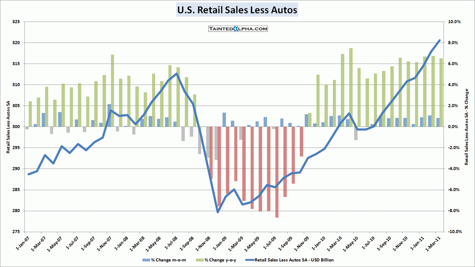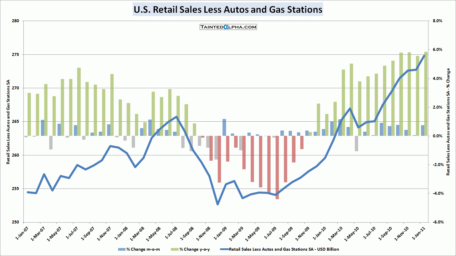 Autos taken out, the figure was an increase of 0.8% vs. consensus of 0.7%. Prior reading was revised to +1.1% (up 0.5%). On year level retail sales less autos are up 6.5%.
