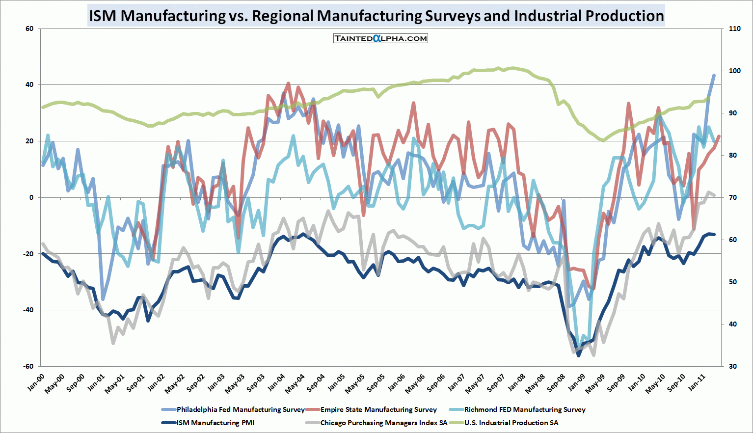 Chicago Purchasing Managers Index, Empire State Manufacturing Survey, Industrial Production, ISM Manufacturing Index, Philadelphia Fed General Business Conditions Index, Richmond FED Manufacturing Survey