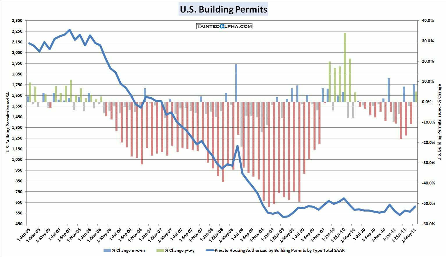 Number of building permits issued in the U.S. in May rose 8.7% to 612.000. Consensus was at 557.000. On year level number of building permits issued in the U.S. is up 5.2%.