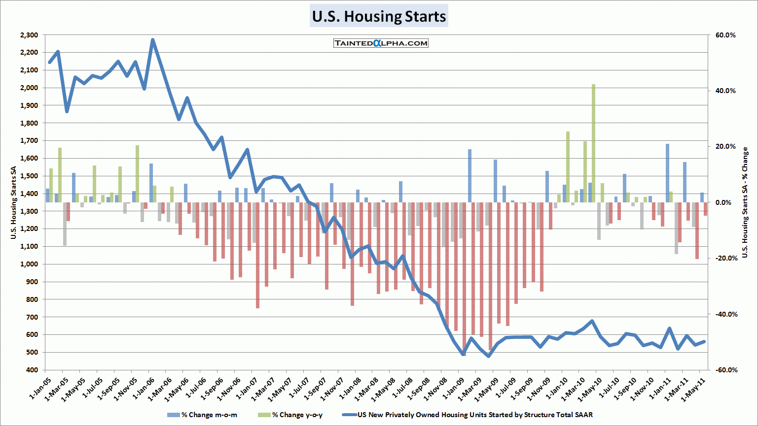 U.S. housing starts in March rose 3.5% to 560.000 vs. revised (18.000 higher) 541.000 April reading. Consensus was at 545.000. On year level U.S. housing starts are down 3.4%.