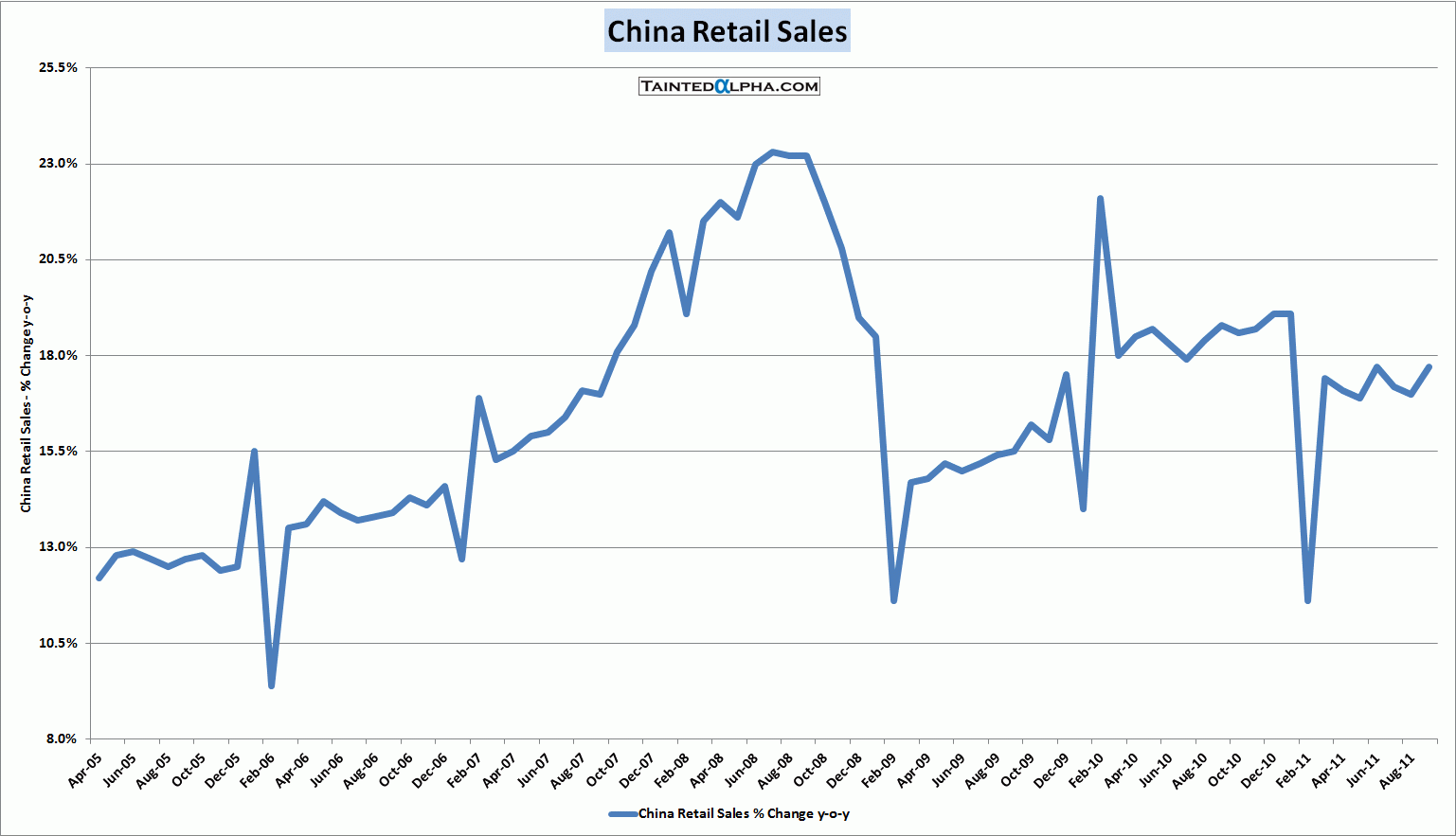 China retail sales rose 17.7% y-o-y in August vs. 17.o% August reading. Consensus was also at 17.0%.
