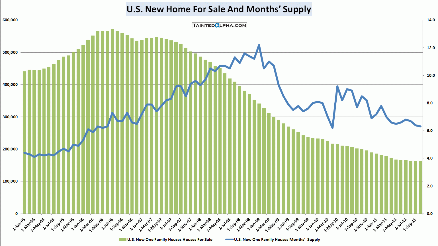 Months of supplies fell from 6.4 to 6.3 months. Backlog of unsold new homes remained at 162.000.