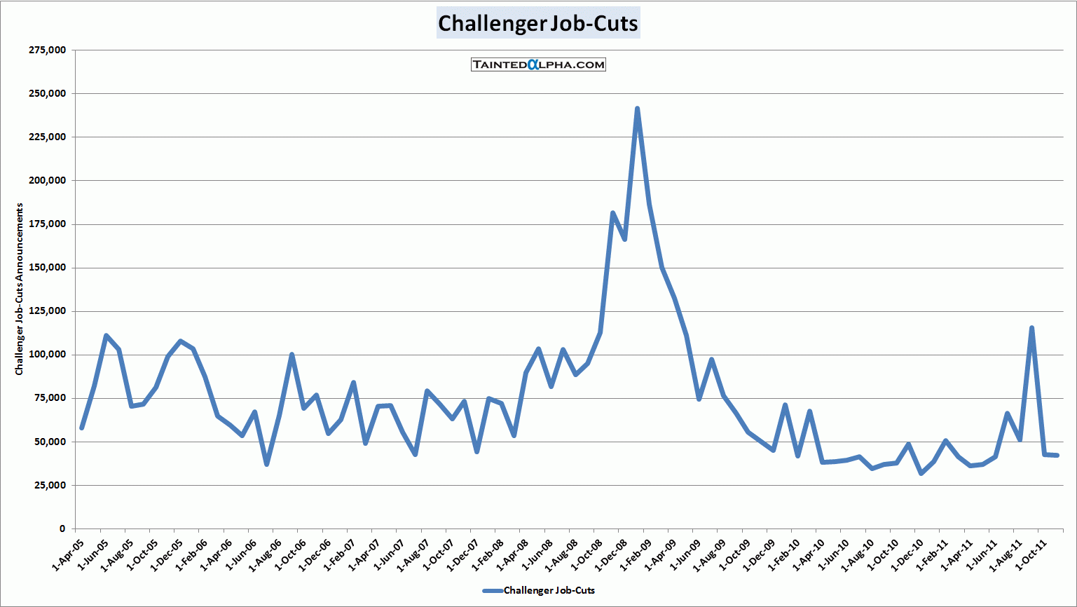 Challenger’s count of layoff announcements was reported at 42,474 in November vs. 42,759 in October.
