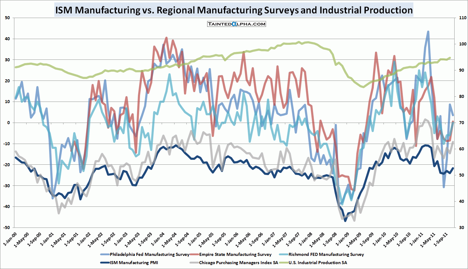 Chicago Purchasing Managers Index, Empire State Manufacturing Survey, Industrial Production, ISM Manufacturing Index, Philadelphia Fed General Business Conditions Index, Richmond FED Manufacturing Survey