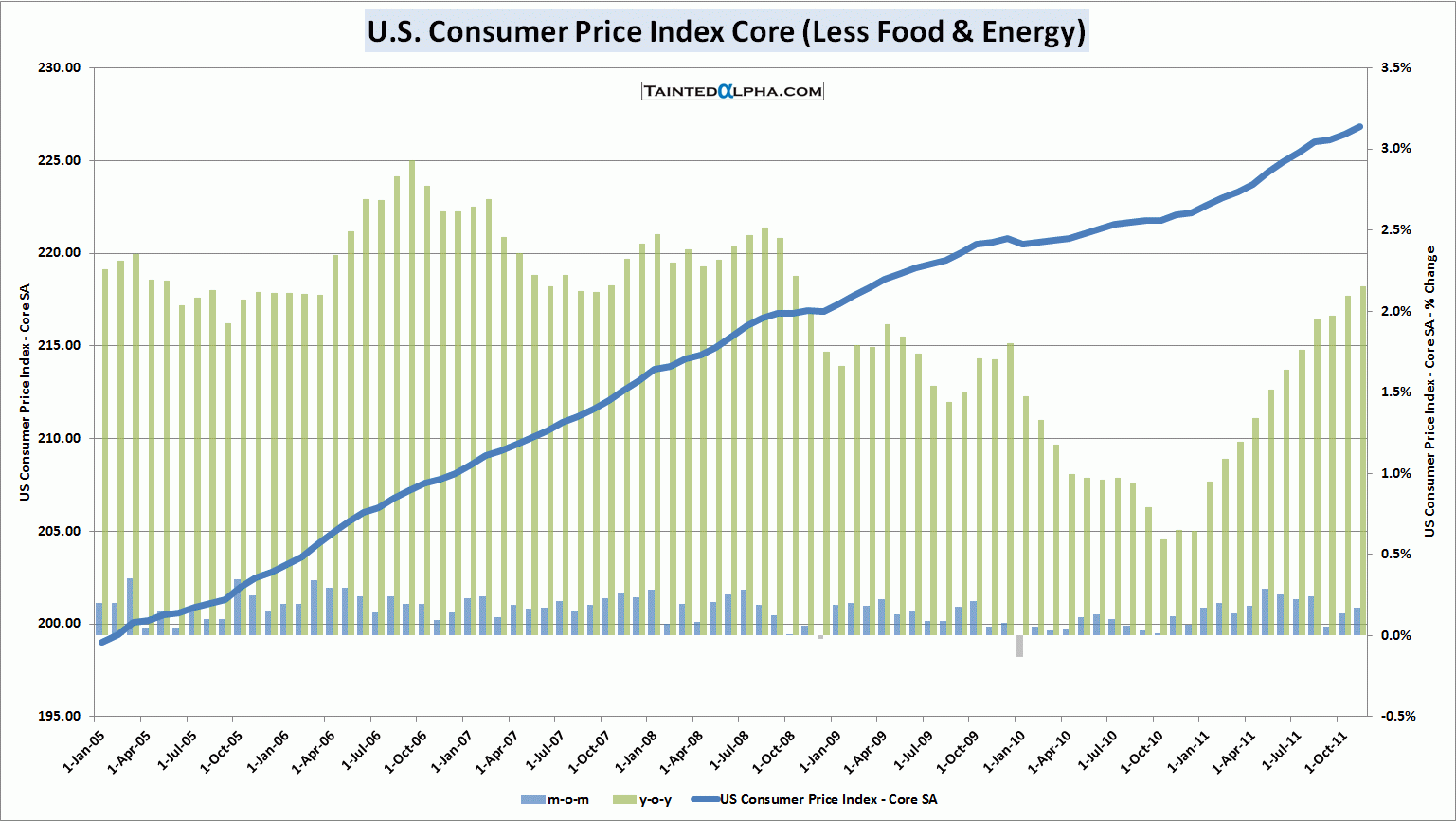 Consumer price index less food & energy came at 0.2%. October reading and consensus were at 0.1%. On year level CPI core inflation is running at 2.2%.