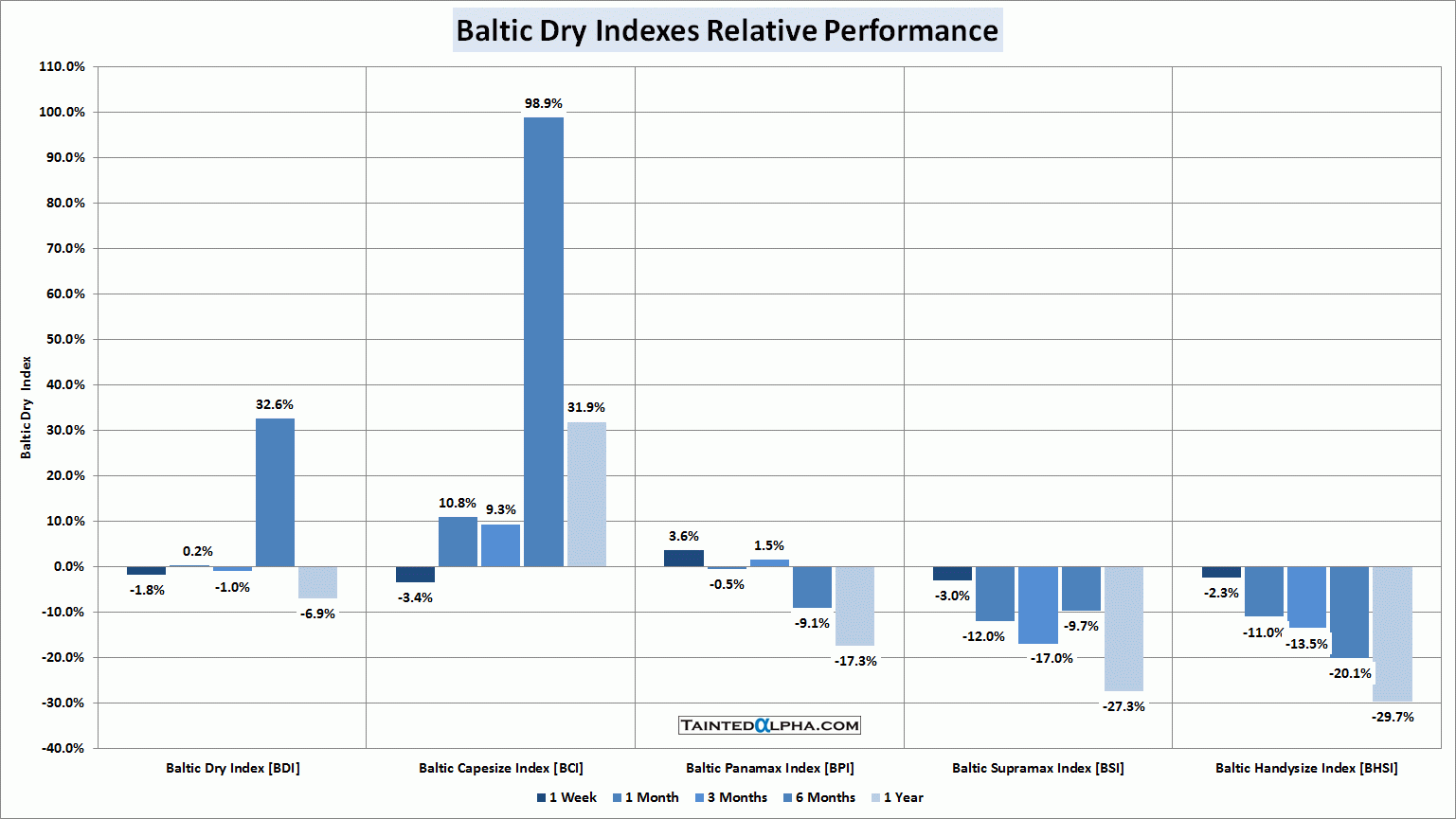 Baltic dry index fell 1.8% last week; Capesize Index was down 3.4%; Panamax Index rose 3.6%; Supramax Index was down 3.0%; Handysize Index fell 2.3%.