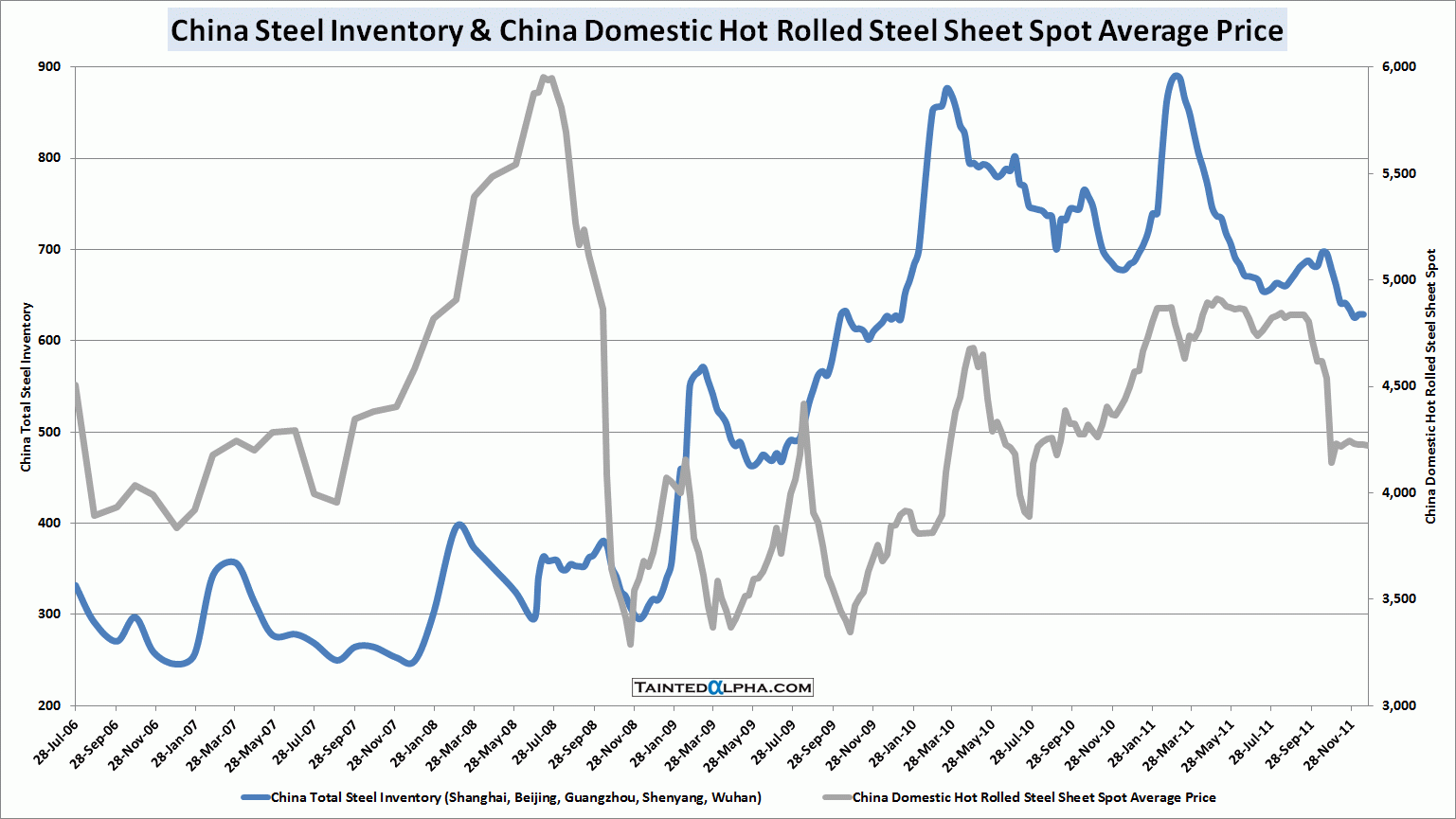Iron ore inventory close to all-time high, iron ore price moved lower; Steel inventory and price remained mostly unhanged; Coal price stable, inventory moved further up.