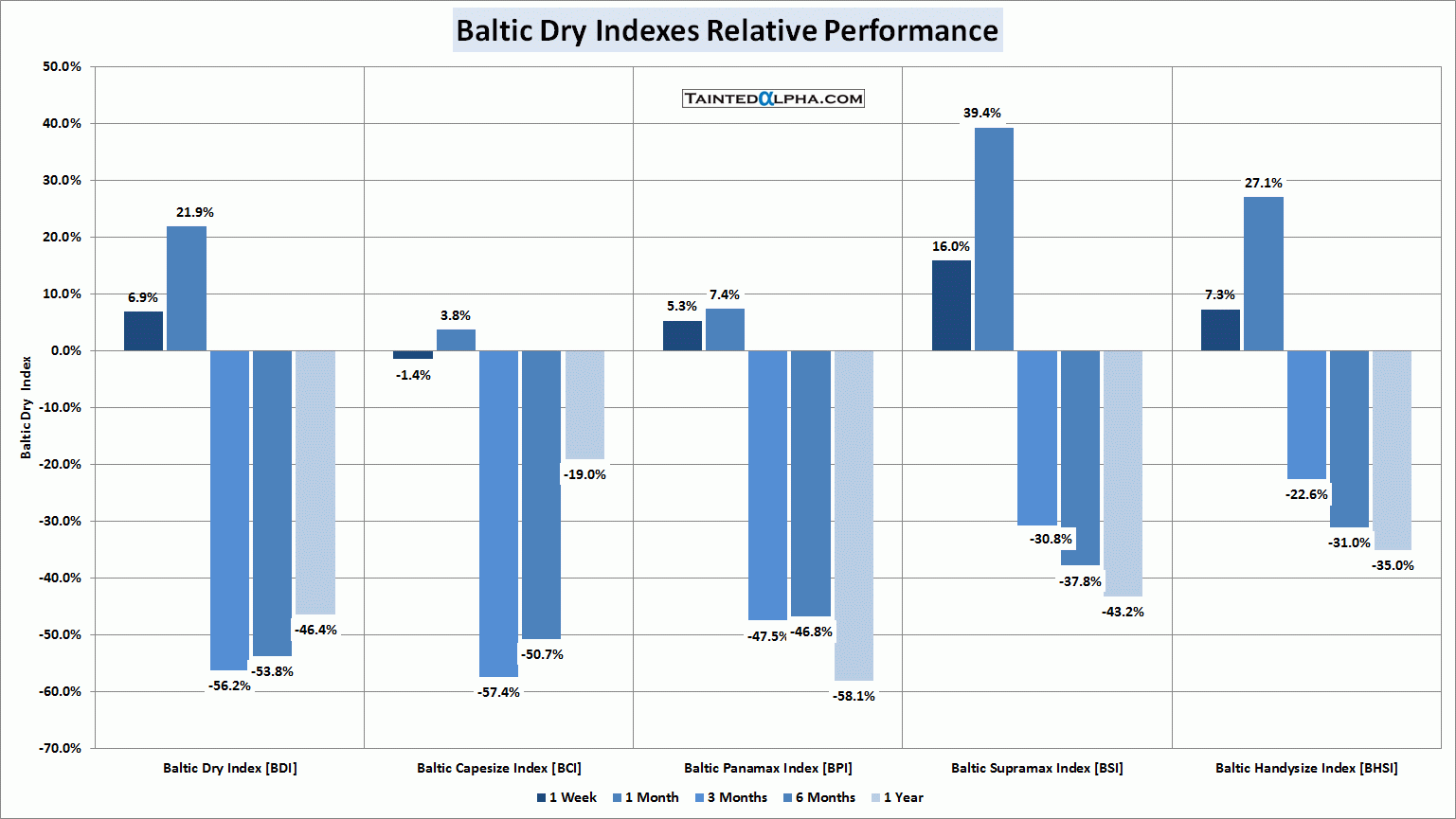 Baltic dry index rose 6.9% last week; Capesize Index was down 1.4%; Panamax Index rose 5.3%; Supramax Index was up 16.0%; Handysize Index rose 7.3%.