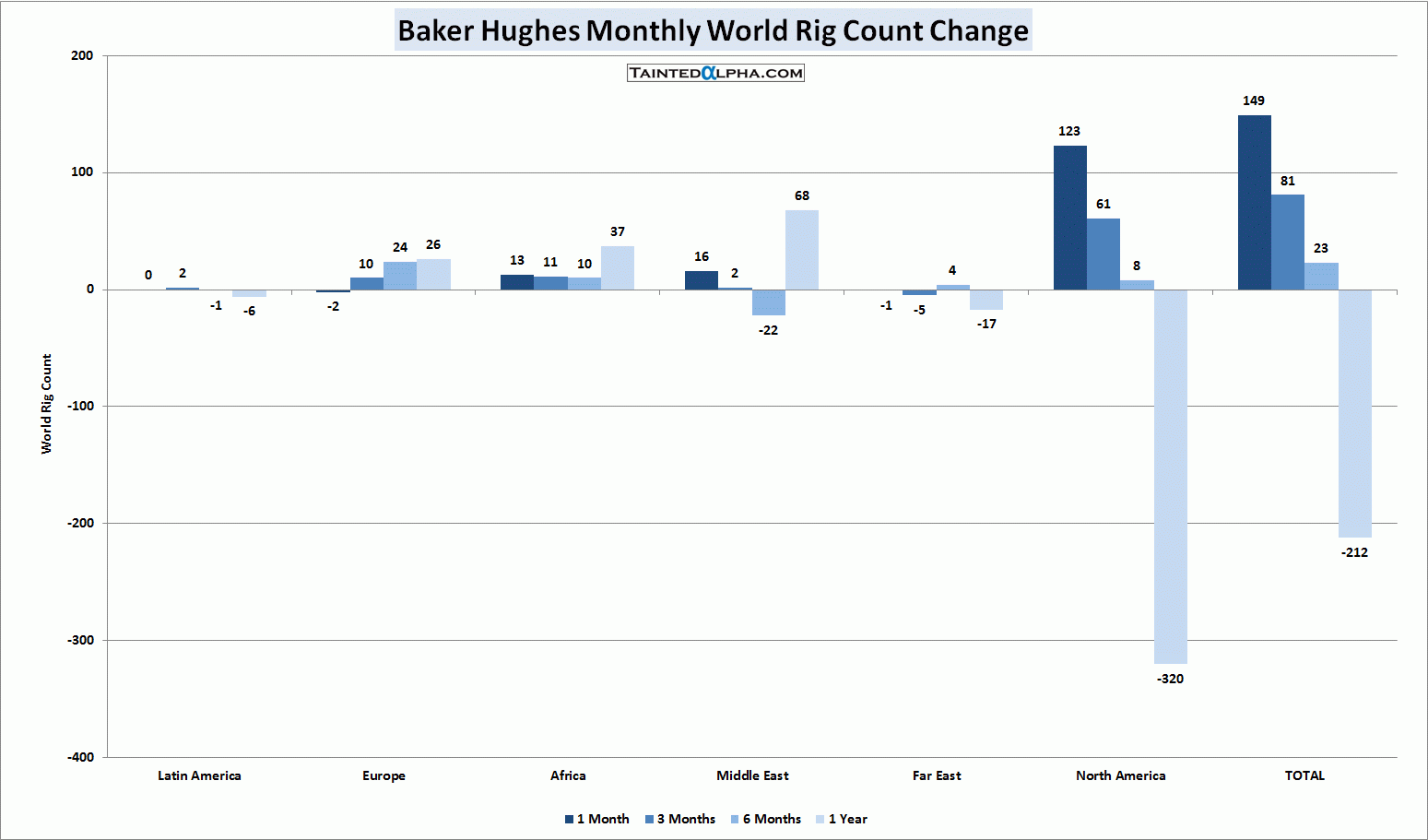 On world scale number of oil & gas drilling rigs changed only for the change in the U.S.
